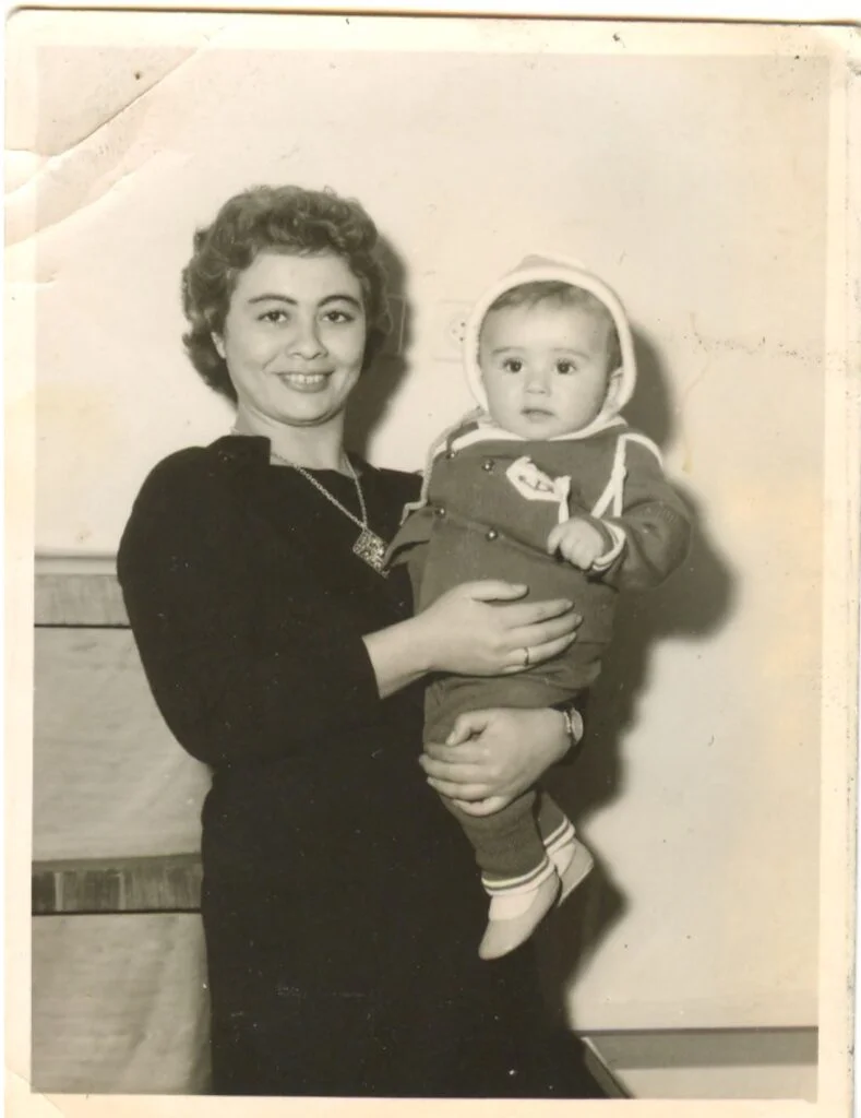 My mom, my dad, uncle Mahmoud, uncle Ali, and me when I was an infant.